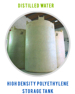 The high density polyethylene storage tanks are designed for the storage of high quality processed pure distilled water before bottling.