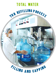 Washed tubs are filled with processed water and sealed with double locking caps. Test similar to those used on 500ml and 1500ml bottles, are conducted.